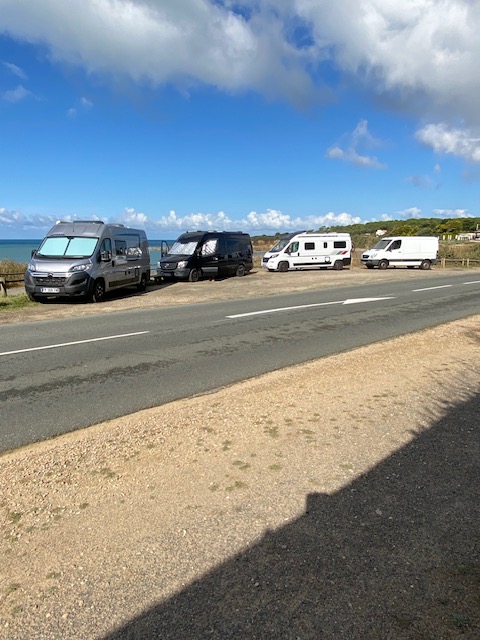 Tout l’été, absolument tout l’été et tous les jours, des campings cars s’installent sur les deux aires de stationnement prévues pour les automobiles devant la mer, empêchant tout véhicule léger de s’arrêter pour contempler le paysage. Et ne croyez pas que ces campings cars ne fassent que stationner quelques heures. Non, les camping caristes squattent plusieurs jours d’affilée voire une semaine entière, y dorment, y mangent, y font leur lessive et leur ménage, déposent leurs ordures et parfois allument un barbecue … tout comme sur une aire autorisée (il y en a une très proche et très chouette). Le plus « drôle », c’est d’observer le manège du vendredi juste avant le week-end. C’est à qui arrivera le premier pour avoir la meilleure place et parfois réserver la place d’à côté pour les copains. Un soir que nous marchions sur le sentier, nous avons même pu assister à une dispute musclée car l’un des campings cars s’était garé trop près d’un autre qui ne pouvait plus étaler sa table et à peine ouvrir sa porte. Quel respect des espaces publics ! Quel civisme !