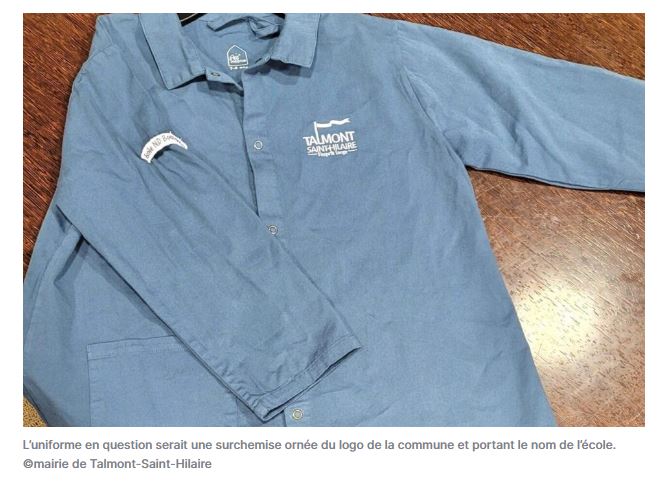 Le journal des Sables a publié un article le 26 octobre dans lequel le maire de Talmont-Saint Hilaire veut expérimenter l’uniforme de la maternelle à l’école élémentaire dans toutes les écoles de la ville. J’ai failli tomber de ma chaise et renverser mon café en lisant cette horreur.
